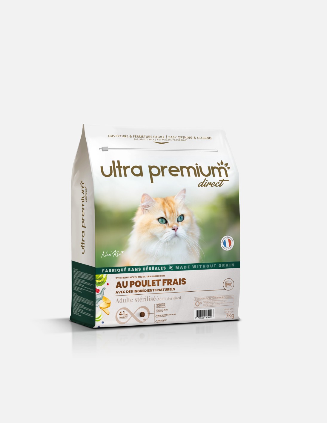 Création d’un nouveau packaging Ultra Premium Direct pour chat, dans la lignée de la gamme existante. Retouches photos.