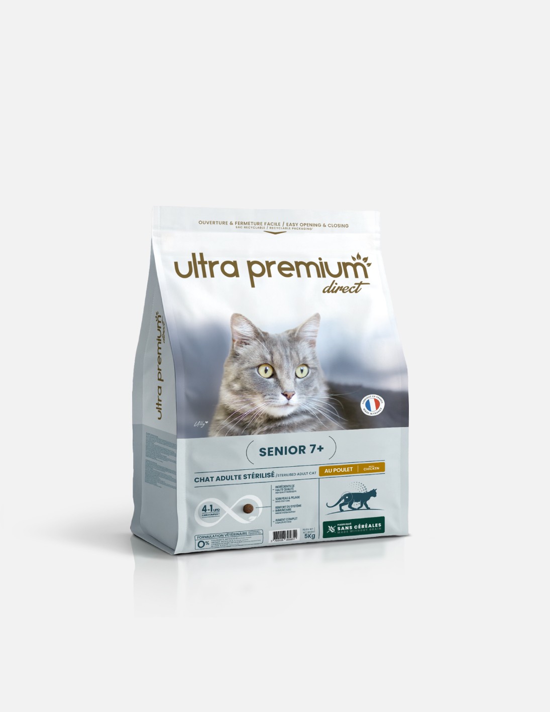 Création d’un nouveau packaging Ultra Premium Direct pour chat senior, dans la lignée de la gamme existante.